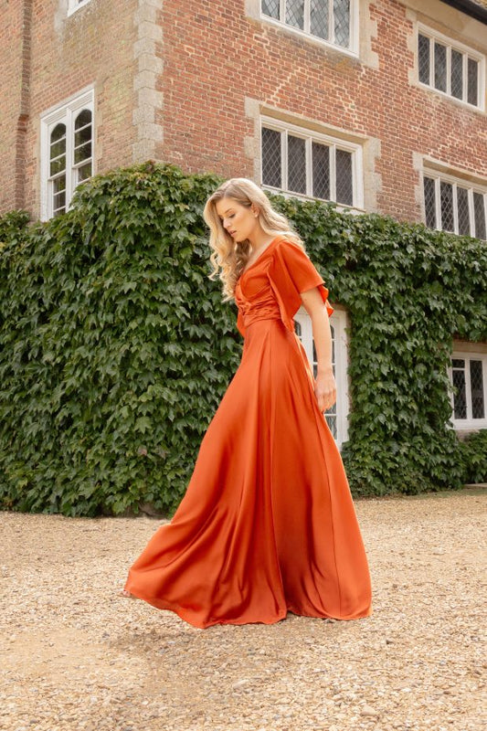 Introducing Wovn, bridesmaid dresses available at Felicity Rose Bridal in Maidstone, Kent, crafted from soft and silky liquid satin fabric for a luxurious touch. Perfect for bridesmaids, prom or special occasions alike, these dresses feature a range of necklines, design details, and hem lengths.
