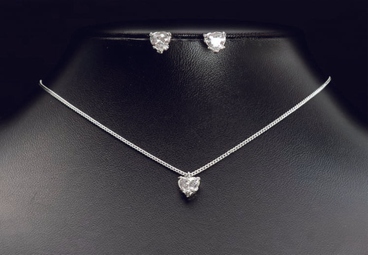 Elegance necklace with a central crystal love-heart shaped drop with matching earrings.